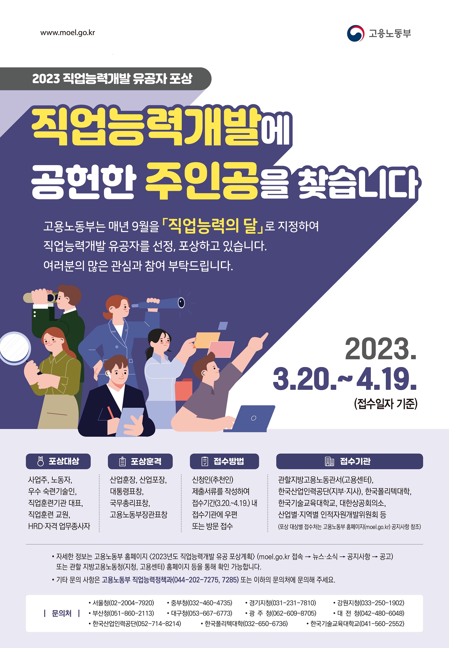 [고용노동부] 2023년도 직업능력개발 유공 포상 신청 안내